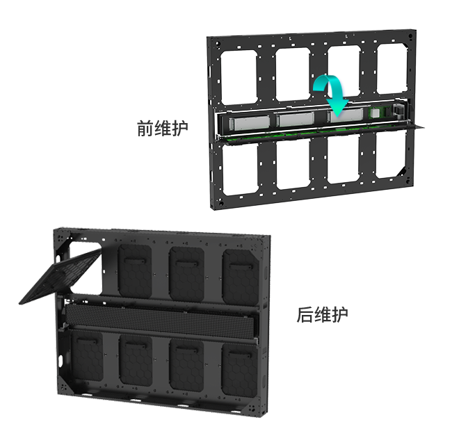 专业热力学鳍状一体铝型材后盖,增加与空气接触面积,有效将屏体产生的热量导出。